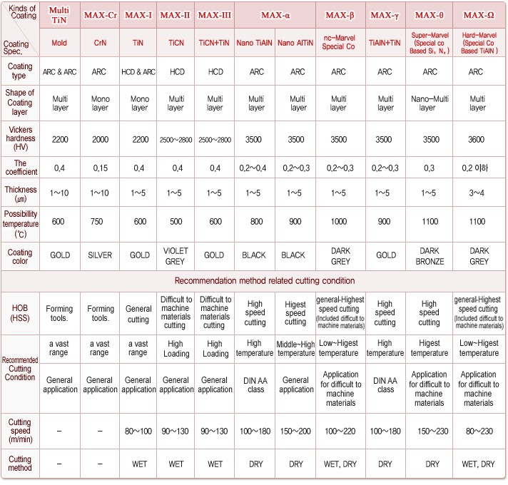 تیغه دنده زنی هاب بصورت بدون رویه کاری و یا با اعمال رویه کاریهای خاص تولید میشوند، در زیر انواع رویه های روتین با تشریح خواص مربوطه در جدول زیر آورده شده است.